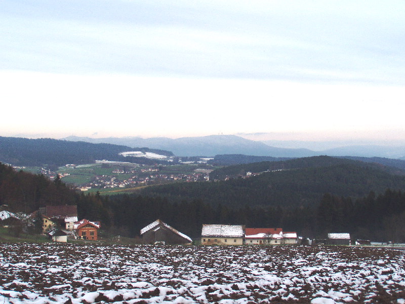 Blick über meinem Wohnort mit Haidstein. (750 m)