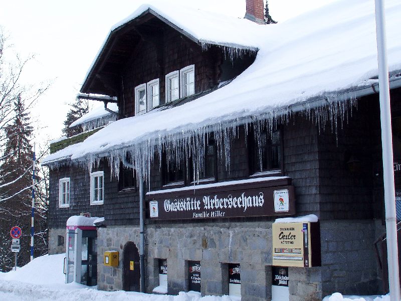 Schon etwas höher: Das Eiszapfengeschmückte Arberseehaus