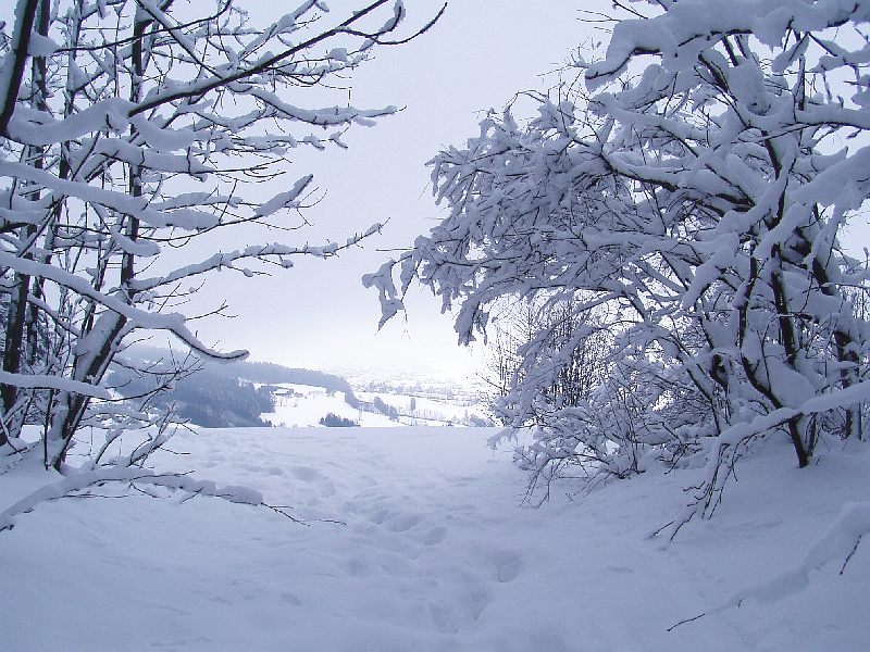 Zunächst auf der etwa 50-70 cm hoch verschneiten Höllhöhe: (700 m)