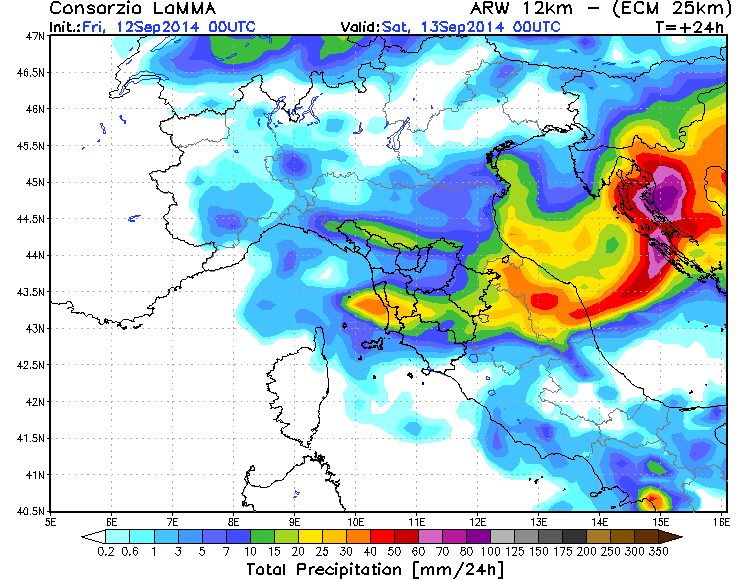 WRF Prognose für diese Nacht für die Adria. Unglaubliche Regensummen, kommen da zusammen!