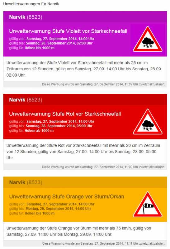 Unwetterwarnung für Narvik