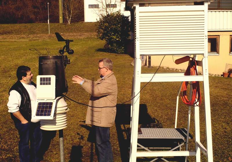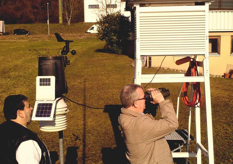Nun sucht der DWD einen neuen Standort und einen Stationsbetreuer. Nachdem in Rheinfelden die Suche bis jetzt ergebnislos war bewarb ich mich mit dem Standort meiner Station Hauptstrasse. Am 10. Februar kamen Herr Gutwein und Herr Roß vom DWD Außenstelle Stuttgart zur Besichtigung.