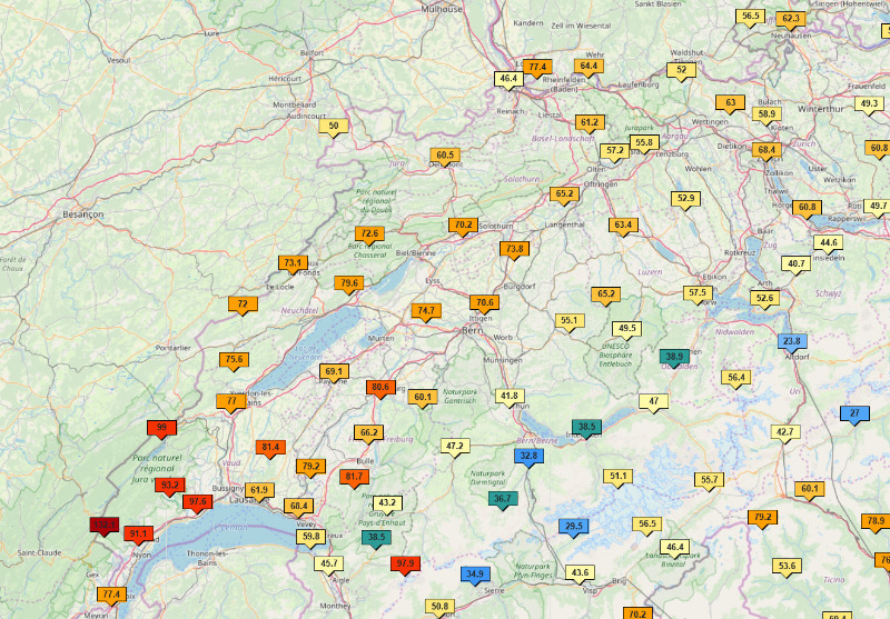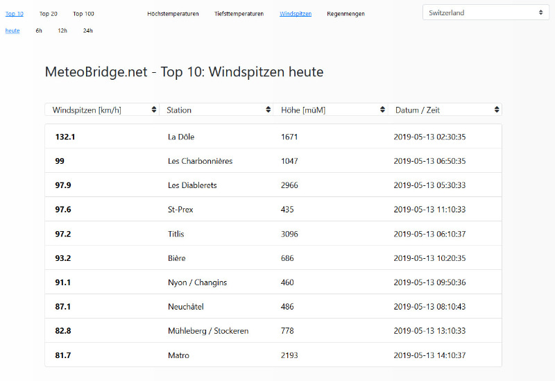 Hier die MeteoSchweiz Stationen von heute: