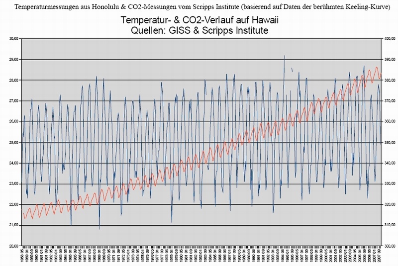 "Wasserdampf und Kohlendioxid in der Atmosphäre haben eine entscheidende Wirkung auf das Klima: Ohne diese Spurengase würde aufgrund der Strahlungsbilanz zwischen Einstrahlung von der Sonne und Abstrahlung von der Erde die mittlere Erdtemperatur an der Erdoberfläche etwa -18°C betragen."[...]