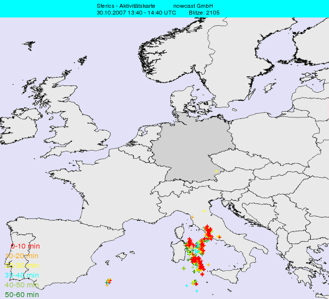 Hier die Blitze von 14:40 bis 15:40 Uhr MEZ: