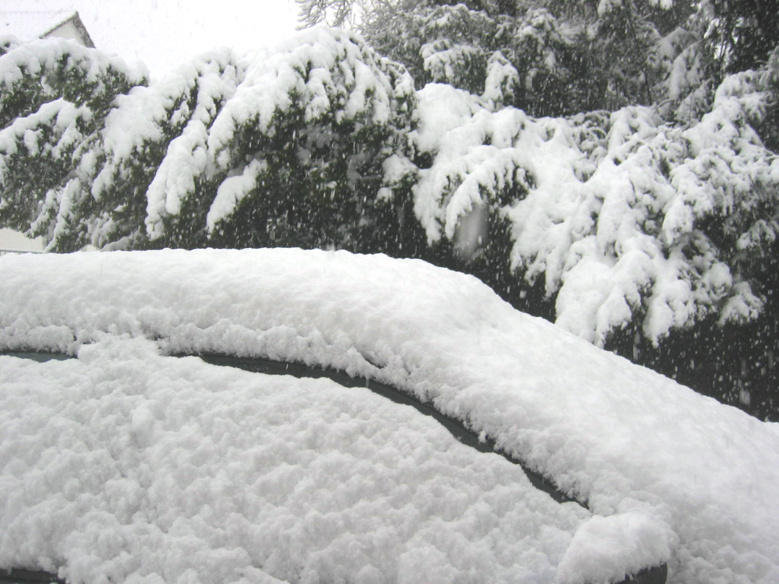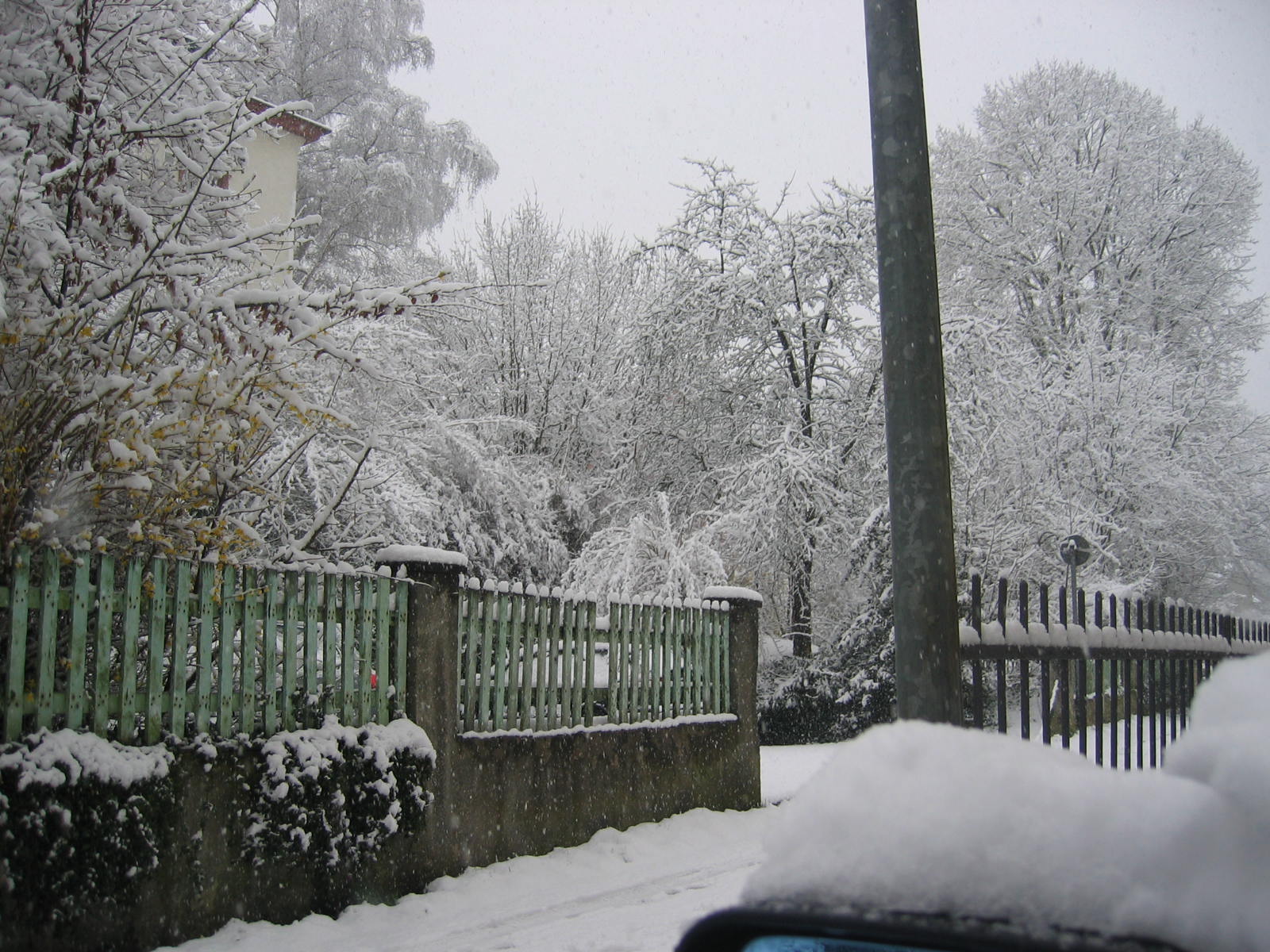 Es begann am Nachmittag des letzten Sonntag. Es kam ein heftiger Graupelschauer auf, der sich aber zu Dauerniederschlag entwickelte. Die Szene war richtig unheimlich, da es immer dunkler wurde. Zu diesem Zeitpunkt hatte es noch 5-6 Grad gehabt. Nach einer halben Stunde war der Boden schon weiß von den kleinen Eiskörnern. Dann ging das Ganze in dreistündigen Starkschneefall über und die Temperatur sank auf Werte knapp über den Gefrierpunkt. Immerhin blieben rund 5 Zentimeter liegen. Die folgende Nacht brachte dann Bodenfrost (die Schneedecke sackte jedoch zusammen auf rund 3 cm)
