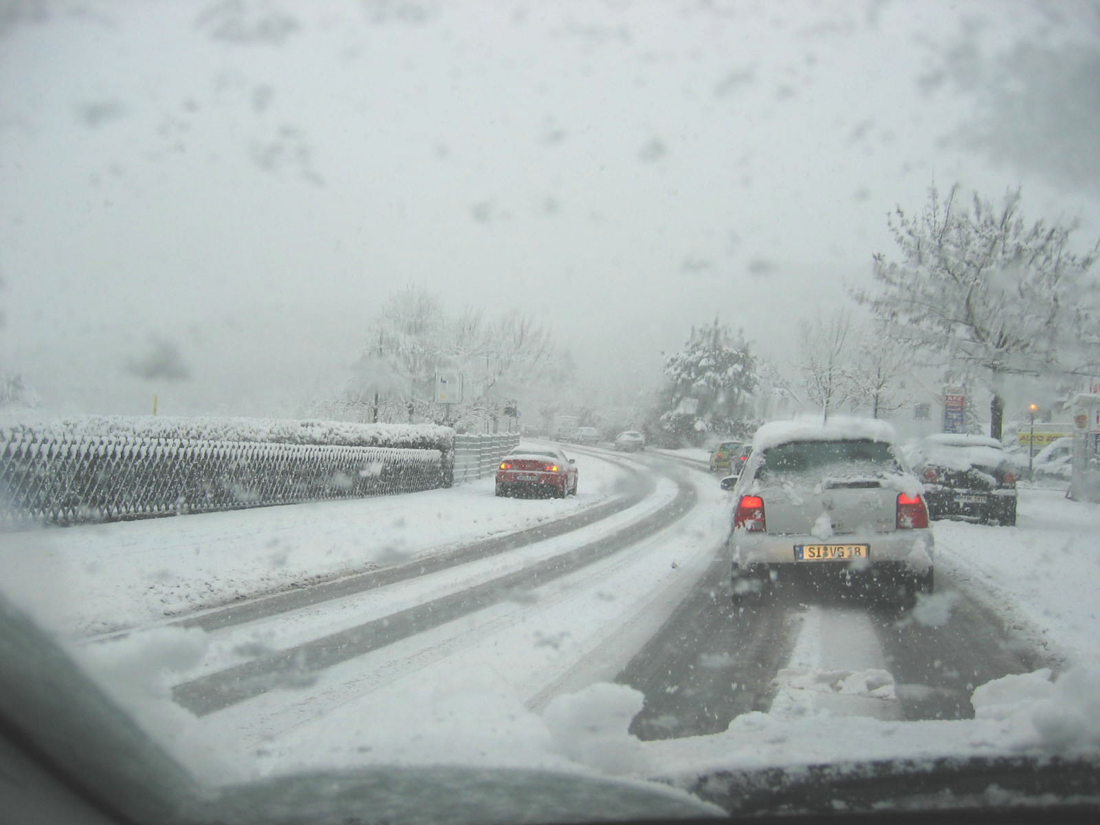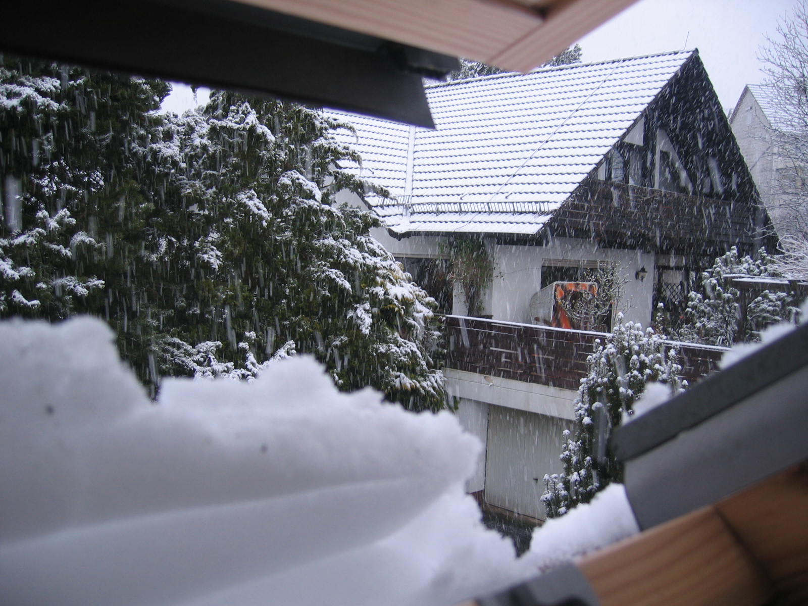 Am Montag um ca. 7 Uhr begann dann aber erneut starker Schneefall. Ich habe selten solch einen heftigen Schneefall erlebt. Teilweise kamen Flocken in der Größe von Schneebällen vom Himmel. Innerhalb von 20 Minuten wuchs die Schneedecke um 4 Zentimeter !! an. Insgesamt fielen in den zwei Stunden rund 8 Zentimeter, so daß ich auf stolze 11 Zentimeter Gesamtschneehöhe kam (ab 300 Meter allerdings 15-20 Zentimeter)