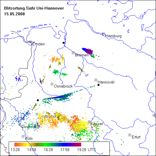 Bei mir gab es am Abend nur ein paar Donnergrollen aus dem Norden, wo sich noch eine Zelle gebildet hat mit einer ebenfalls großen Ost-West-Ausdehnung.