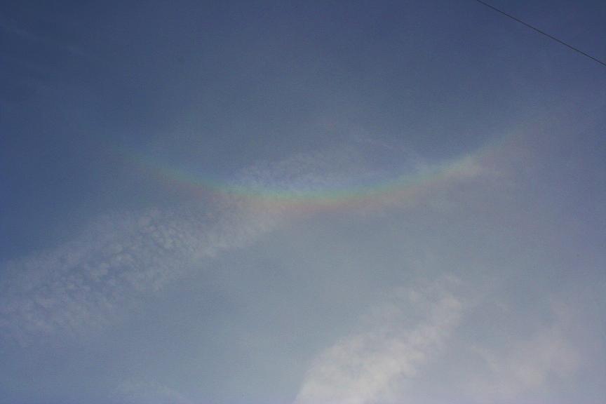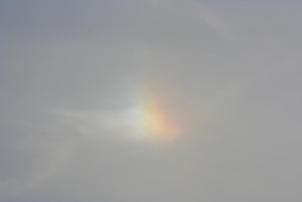 Zur Mittagszeit, bei ganz bestimmten Eiskristallen in der oberen Atmosphäre erscheint am Horizont eine regenbogenartige Forelle. Nicht sonderlich spektakulär, aber selten eben. Also Augen auf!