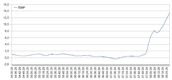 Der freihängende Logger im Garten verzeichnet seine ersten Minusgrade.