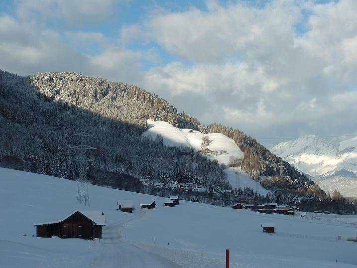 Am Morgen bis 7 hats geregnet, dann kamen Schneeflocken dazwischen, dann hauptsächlich Flocken, aber pitsche-patsche-nass. Hier im Tal bin ich losgefahren, da war gar nichts liegengeblieben. Nur ein paar Meter höher, noch innerhalb des Dorfes, lag dann etwas Nassschnee auf den Wiesen und Dächern und es platschte munter weiter drauf. Zum Mittag irgendwann wurde wieder Regen draus und hat das bißchen Weiß abgespült. Die Erde ist vollgesogen wie ein Schwamm.