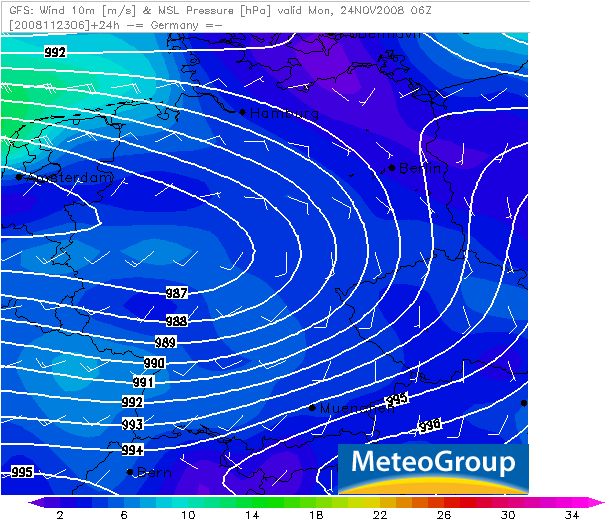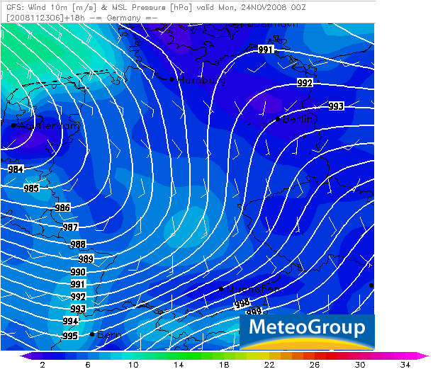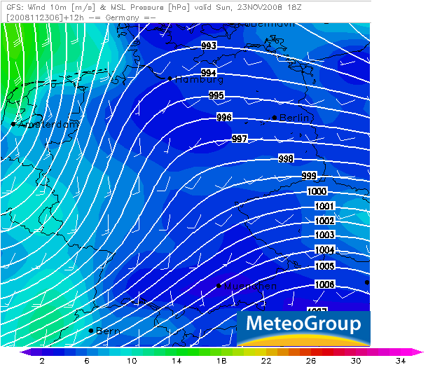 Der Gradient war in der Tat relativ gering. Hier mal die GFS-Karten von gestern für gestern. Aber hier hat es doch ein wenig mehr geweht dann am Abend.