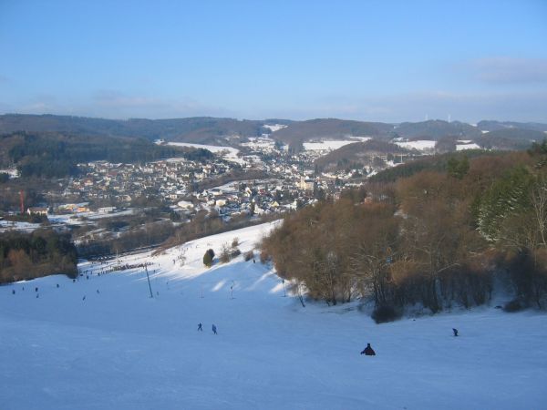Heute Vormittag bin ich dann mit meinem Neffen und meiner Nachbarin zum Schlittenfahren gewesen. Leider hat uns der Schneepflug die übliche Bahn um mehr als die Hälfte gekürzt, aber mein Neffe wußte eine Wiese, die noch steiler ist und zwei natürliche Schanzen hat, wo man dann einen kleinen Flug erlebt. Wir haben einen Riesenspaß gehabt, zweimal haben die beiden mich in den Schnee gekippt, aber selber haben sie sich auch gewälzt.