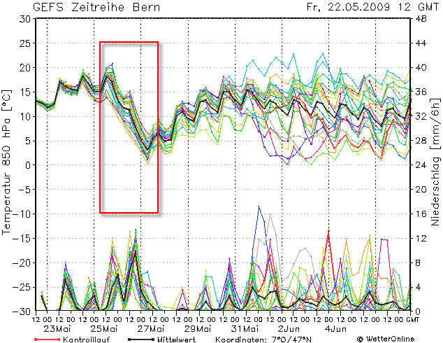 Von kommenden Montag auf Dienstag findet vor allem in der Höhe ein regelrechter Temperatursturz statt. Wird am Anfang noch warme Luft aus dem Mittelmeerraum zu uns verfrachtet, fallen die Temperaturen auf 1500m von Montag auf Dienstag um rund 15° (!) ab. Das könnte - je nach Konstellation - bös ins Auge gehen.