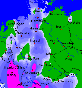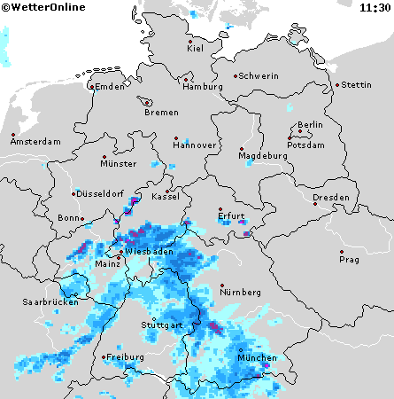In der vergangenen Nacht sollte es dann aber richtig zur Sache gehen. Aber natürlich blieb es trocken und nun scheint mal wieder die Sonne. Aktuell kann man mal wieder erkennen, daß die Niederschläge knapp südlich an Marburg vorbeiziehen (wir liegen in dem grünen Loch rund 100 KM nördlich v Frankfurt). Ansonsten zogen Gewitter und Regen meist nördlich oder westlich vorüber. Meistens wurde sogar unser komplettes Hessenland ignoriert. In Philips und Kerstins Ecke war dies in diesem Sommer ähnlich