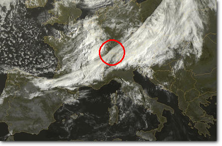 So wie es ausschaut, bildet sich ein Randtief in der grooooossen langgezogenen Kaltfront. Einen kleinen Knick hat es aktuell grad gegeben. Siehe Bild.