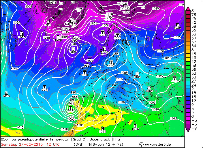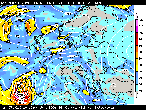Das ist ein ganz außergewöhnliches Tief. Ich beobachtes es schon seit einigen Tagen bzw. seine Simulation. Da werden echte tropische Luftmassen mit einbezogen. Das Tief bildete sich in der Karibik und sollte dann eigentlich gen Westen (Passat) ziehen. Sollt es, tut es aber nicht. Es zieht mit seinen tropischen Eigenschaften gen Osten (auf den ersten Karten der 1010er Klecks auf Höhe von Florida) und wenn es mit der Kaltluft in Berührung kommt vertieft sich scheinbar der Kern scheinbar sehr stark.