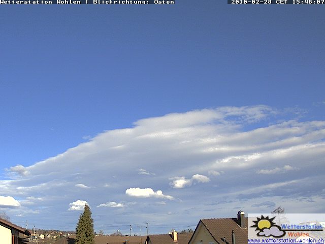 Hier Takt 13.3 °C und teilweise recht sonnig, siehe Bild der Wetterkamera im Anhang. Die bisher höchste Windböe war um 13:26 Uhr mit 51.5 km/h, akutell immer wieder Böen bis knapp an die 50 km/h Grenze.