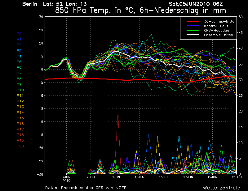 Stimmt. Für einige bedeutet dies gesundheitliche Probleme, für alle bedeutet es das Risiko eines kalten August (nicht-zonaler Frühsommer, heißer Juni, siehe 06). Aber lassen wir uns nicht stören, genießen ist angesagt 8) ! Nächster Donnerstag könnte für mich interessant werden, 25° in 850, wenn das mal keine Rekorde gibt! Momentan stimmen auch alle Modelle ein. GFS will Dauerhitze, EC eine normal warme Schönwetterperiode (NW anti), GEM ebenfalls Hitze, UKMO sieht in der frühen MiFr ähnlich aus. Wahnsinn, wer hätte das vor 1 Woche gedacht?