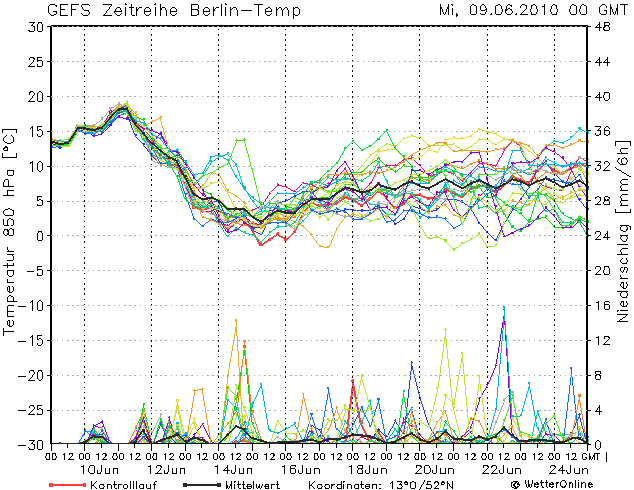Naja, bei Ostlagen habe ich oft schon erlebt, dass wir trotz 5° in 850 um 12 Uhr Mittags immernoch nicht über die 10° hinausgekommen sind, immer wieder toll X(. Aber glücklicherweise zeigen die ENS eher auf Nordwest, das wäre eine Fortsetzung des Schönwetters, vielleicht mit kurzen Unterbrechungen durch Schauer.