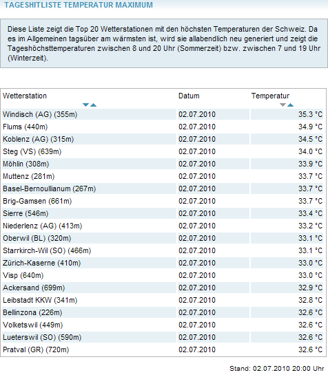 Hier noch die Tmax-Tabelle von meteocentrale.ch