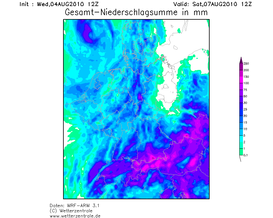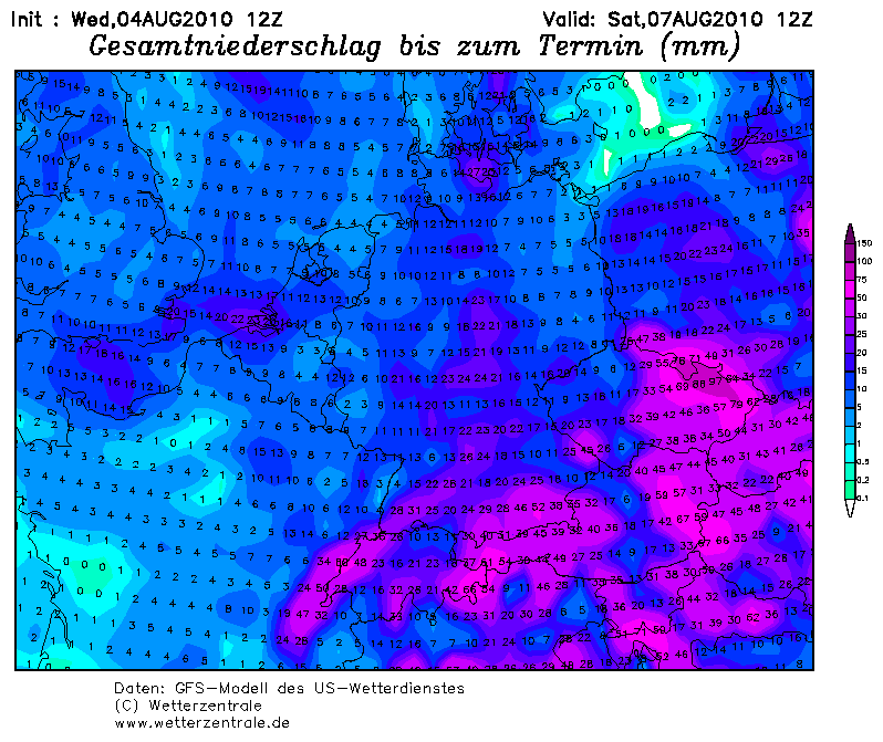 GFS zum Beispiel rechnet an denn Voralpen nur bis ca. 30mm.