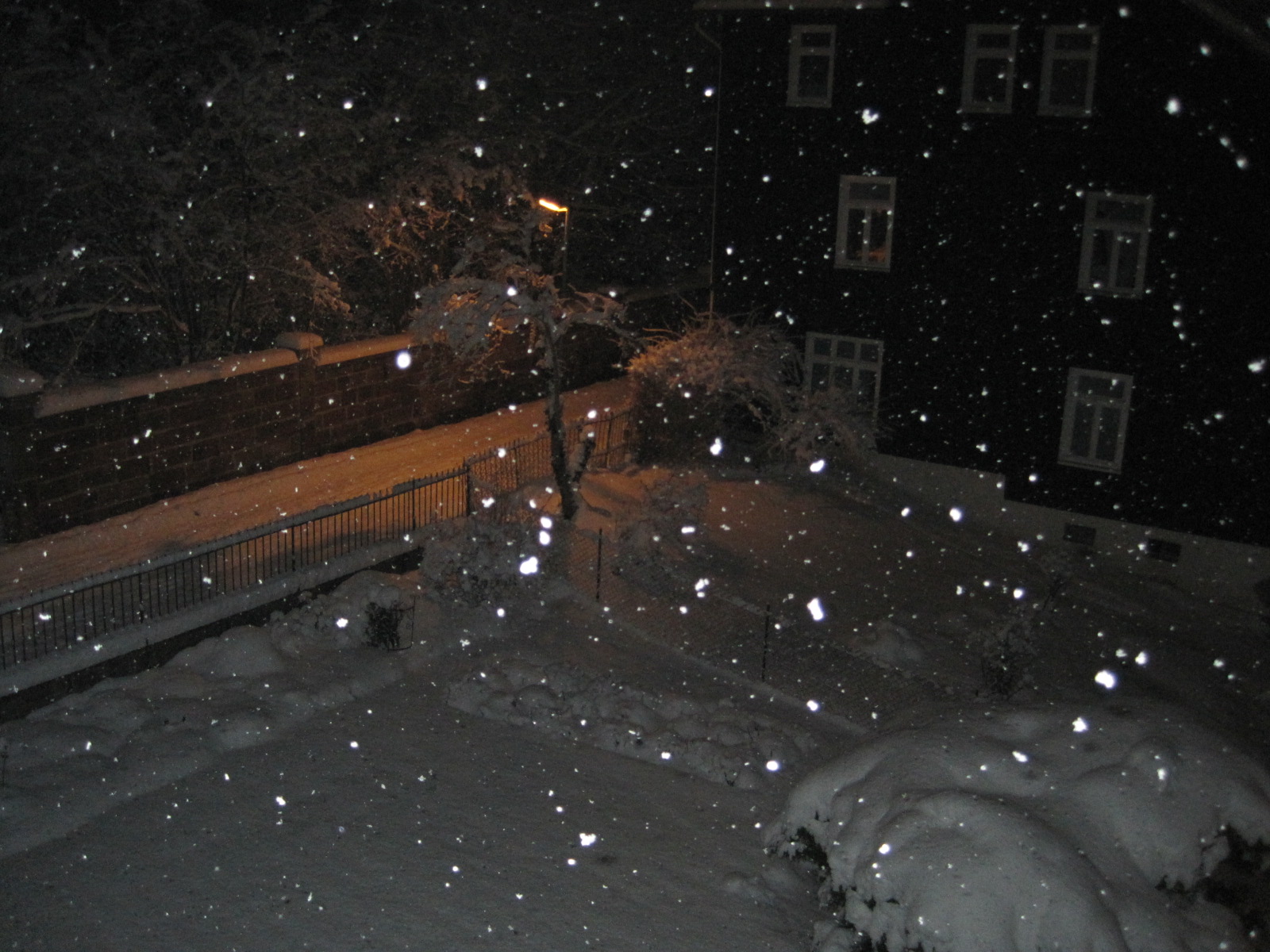 So hat es bei uns am Montag früh kurz vor Sechs ausgesehen, da hat es aber schon über 1 Stunde reingeschifft. Das Bild vom Mittwoch erspare ich dir...denk dir das weisse Zeugs weg..:O