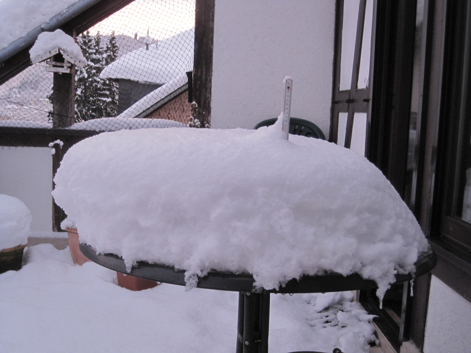 die Tmax nie über 3°C gestiegen, aber der heftige Wind setzte der weißen Pracht gehörig zu, keine geschlossen Schneedecke mehr und noch immer windet es bei 1,5°C.