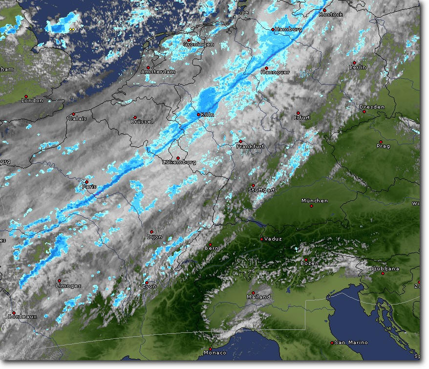 Gestern schon 43.6mm Regen, heute erneut bisher 37.8mm Niederschlag wovon ein Teil als Nassschnee.