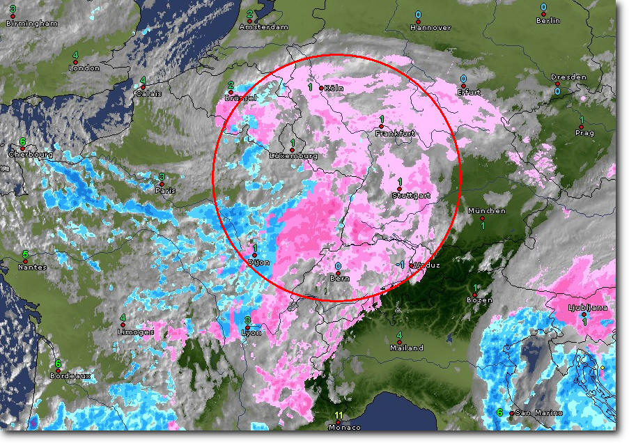 Heute soll alles ganz anders werden. Ein kleines Tief zieht von BeNeLux über den Rhein zu den Alpen. Im Gepäck hat es Schnee. Wo allerdings dem Tief der Schnee aus dem Rucksack fallen wird, da spekuliere ich mal lieber nicht. Schliesslich war ich gestern genug im Keller....