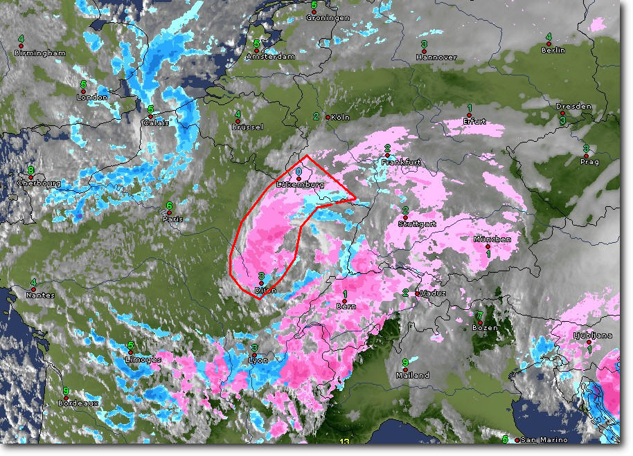 Ich hoffe, der bereits eingerollte Arm, der heute Mittag noch südlich von Brüssel lag, vermag den Weg in die Schweiz noch zu machen, bevor das Tief über die Westalpen ins Mittelmeer rauscht.