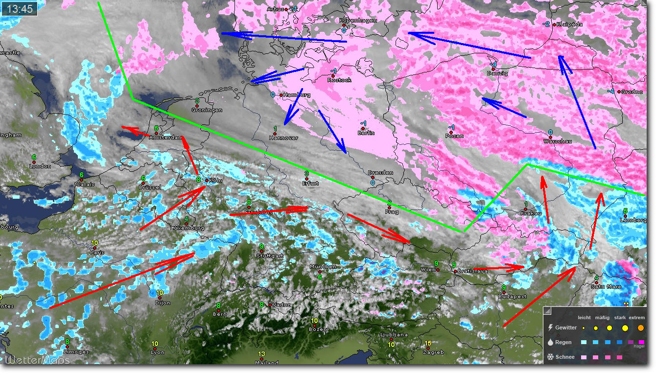 Die Pfeilchen und so male ich immer selber rein, aber die Karten sind von Wetteronline.