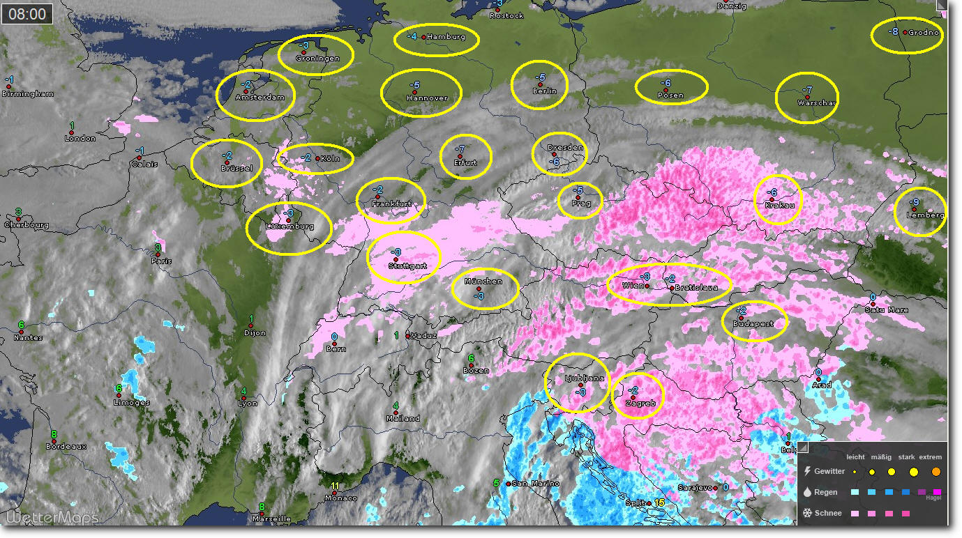 Die Sonne scheint und müsste eigentlich schon gut Kraft haben, aber der kalte Wind bläst alle Wärme weg. Um den Schneehaufen am Rand des Hofes, wo nun schon den ganzen Morgen die Sonne draufscheint, ist nur ein etwa handbreiter feuchter Ring auf dem Boden, wo eigentlich ein steter Strom Schmelzwasser zum Gulli laufen sollte. Frühling geht anders.