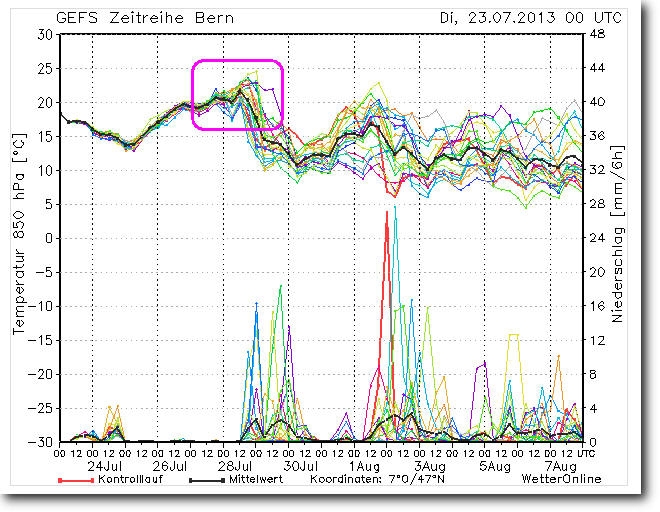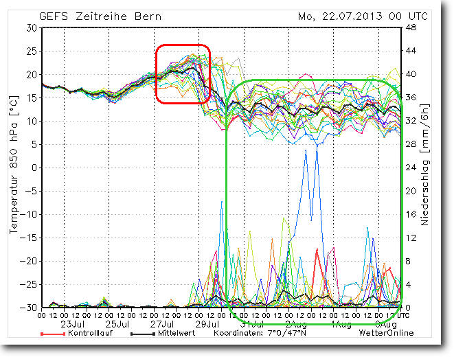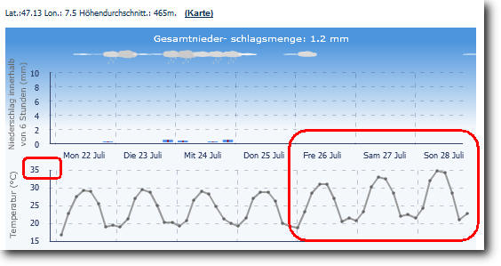 Die Superhitze ist zum Glück nur von kurzer Dauer und auch noch nicht in Stein gemeisselt (Unsicherheiten).