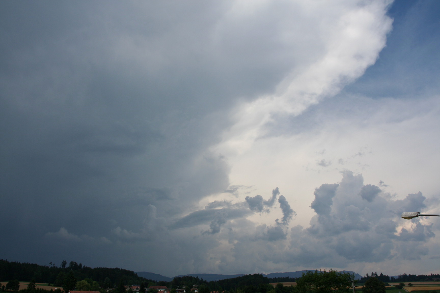 Vorhin ist ein Gewitter mit Starkregen westlich vorbei gezogen. Die Wolken konnte ich bis hier sehen und den Donner als Dauergrummeln hören.