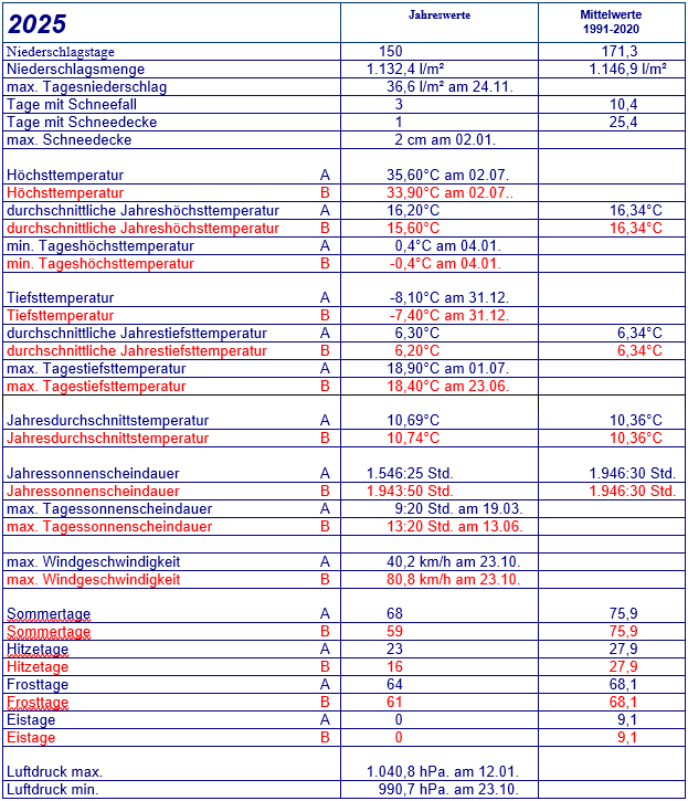 Hier die Schwörstädter Wetterbesonderheiten des Witterungsjahres 2025: